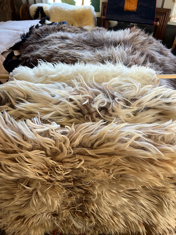 We raise Navajo Churro sheep and sell fleeces, roving, batts and sheepskins.